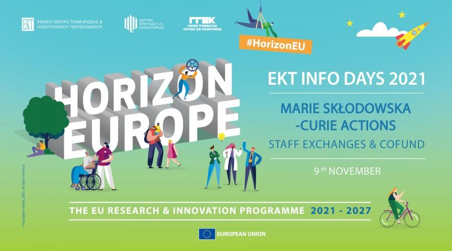 Το Ίδρυμα Έρευνας και Καινοτομίας (ΙδΕΚ) και το Εθνικό Κέντρο Τεκμηρίωσης και Ηλεκτρονικού Περιεχομένου (ΕΚΤ) της Ελλάδος, Εθνικά Σημεία Επαφής για τον Ορίζοντα Ευρώπη, σας προσκαλούν στη διαδικτυακή εκδήλωση με τίτλο «Νέες προκηρύξεις για ανταλλαγές προσωπικού και συγχρηματοδότηση μέσω των Δράσεων Marie Skłodowska–Curie» την Τρίτη 9 Νοεμβρίου 2021 (10:00-13:00), η οποία διοργανώνεται σε συνεργασία με τη Γενική Γραμματεία Έρευνας και Καινοτομίας (ΓΓΕΚ) της Ελλάδος, την Ευρωπαϊκή Επιτροπή και τον Εκτελεστικό Οργανισμό Έρευνας (Research Executive Agency).