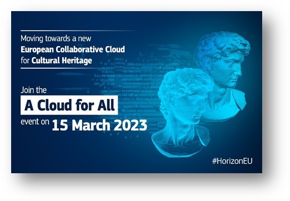 Η Ευρωπαϊκή Επιτροπή, προσκαλεί όλους τους ενδιαφερόμενους και ενδιαφερόμενες, στη διαδικτυακή εκδήλωση “A Cloud for all – the European Collaborative Cloud for Cultural Heritage” στις 15 Μαρτίου 2023, 10:00-12:30 ώρα Βρυξελλών (CET).