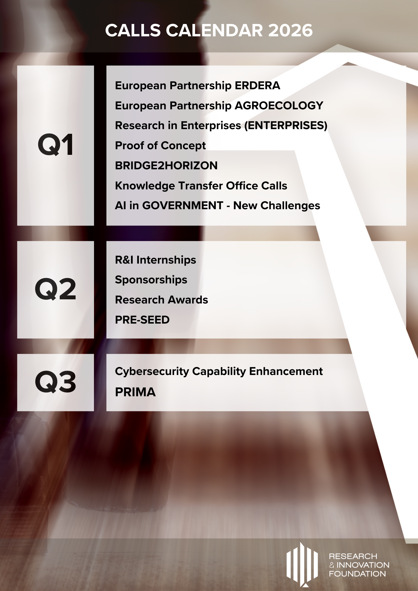 The Research and Innovation Foundation (RIF) announces its planning of calls for proposals for funding for 2026.