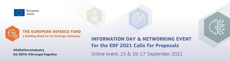 Οι προσκλήσεις υποβολής προτάσεων του EDF για το 2021 δημοσιεύθηκαν στις 30 Ιουνίου στην Πύλη Funding & Tenders Opportunities Portal της ΕΕ. Η πρώτη μέρα της εκδήλωσης θα παρέχει ενημέρωση σχετικά με τις προσκλήσεις αυτές, τη διαδικασία συμμετοχής και τις προσδοκίες της ΕΕ. Στη συνέχεια θα ακολουθήσει διήμερη εκδήλωση δικτύωσης για την ανάπτυξη κοινοπραξιών έρευνας και ανάπτυξης στον τομέα της Άμυνας. Περισσότερες πληροφορίες περιλαμβάνονται και θα ανανεώνονται στον ιστοχώρο της εκδήλωσης, ενώ εγγραφές θα μπορούν να πραγματοποιηθούν από τις 16 Αυγούστου μέχρι τις 8 Σεπτεμβρίου 2021.
