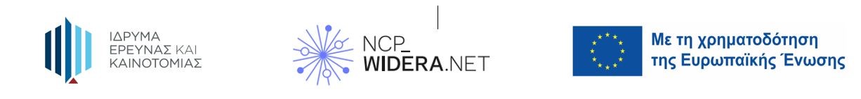 Η δραστηριότητα υλοποιείται στο πλαίσιο του έργου NCP_WIDERA.NET των Εθνικών Σημείων Επαφής της Οριζόντιας Προτεραιότητας «Widening Participation & Strengthening the ERA» και έχει λάβει χρηματοδότηση από το Πρόγραμμα Πλαίσιο για Έρευνα και Καινοτομία της Ευρωπαϊκής Ένωσης Horizon Europe.