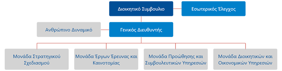 Σύμφωνα με τη νέα Οργανωτική Δομή, η διοίκηση του Ιδρύματος ασκείται από το Διοικητικό Συμβούλιο και η διεύθυνση από το Γενικό Διευθυντή.