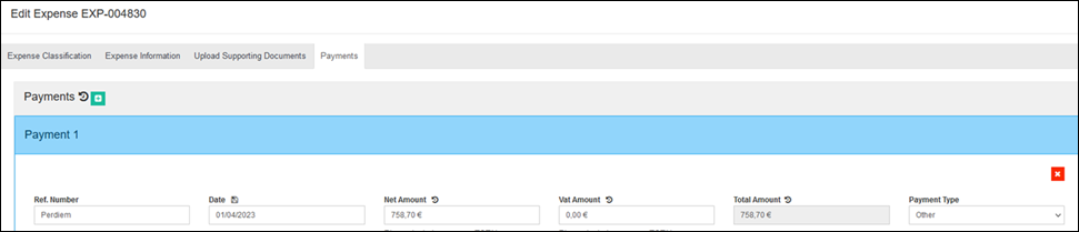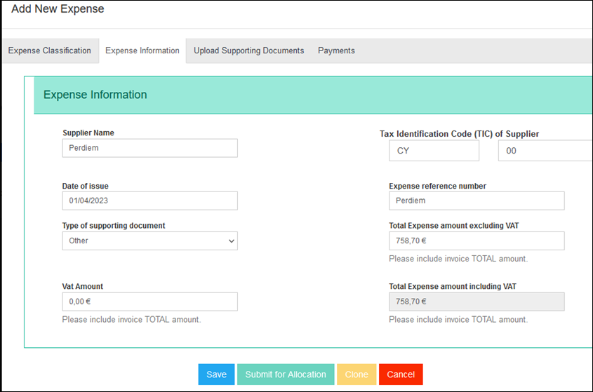 - Στην καρτέλα «Expense Information», συμπληρώνονται τα πεδία πληροφόρησης ως ακολούθως: