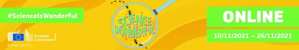 Η εκδήλωση Science is Wonderful! 2021 θα λάβει χώρα σε πλήρως ψηφιακή μορφή στις 10-26 Νοεμβρίου 2021, και έχει σχεδιαστεί για να μεταφέρει τον κόσμο της επιστήμης στα σχολεία πρωτοβάθμιας και δευτεροβάθμιας εκπαίδευσης σε όλη την Ευρώπη.